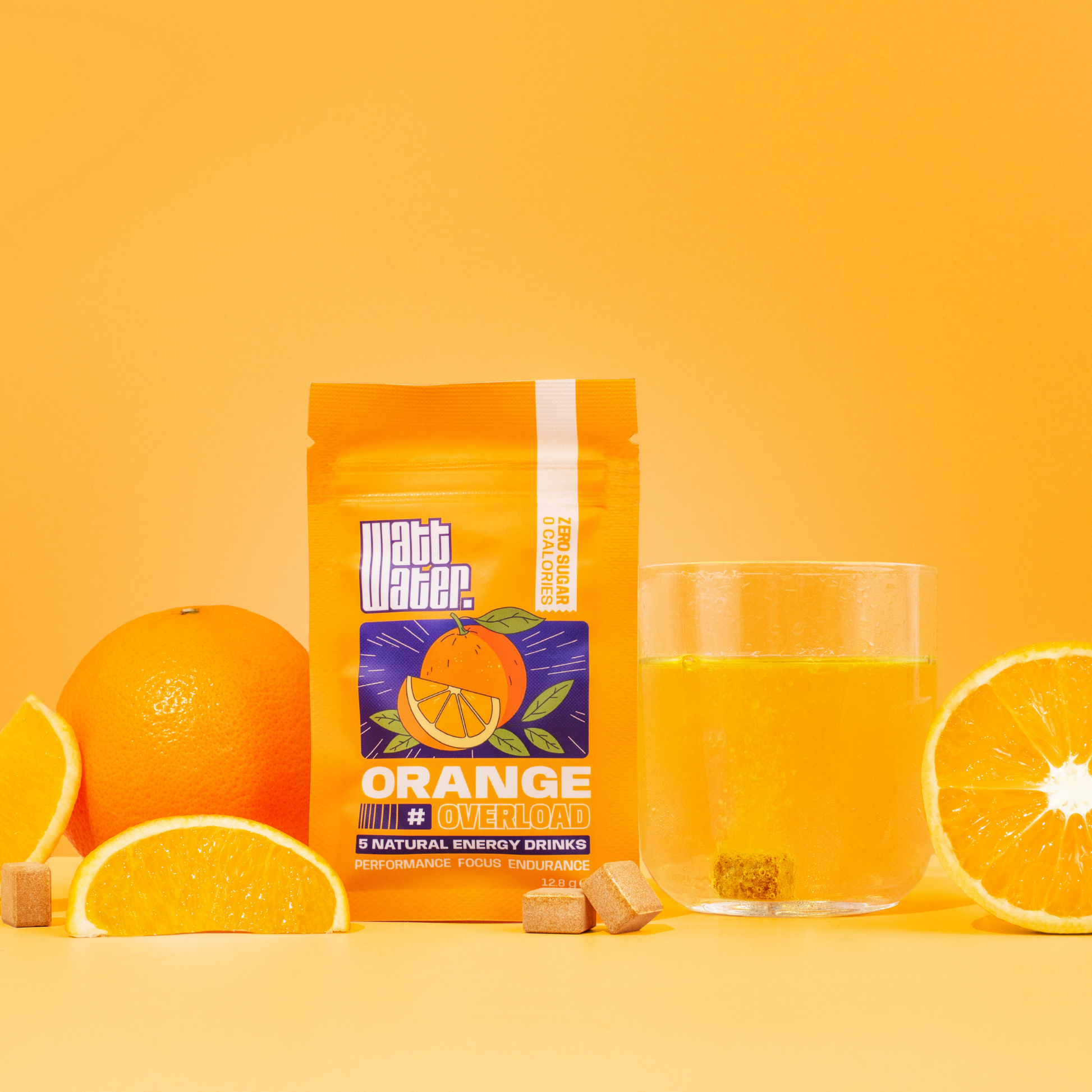 90 servings in packs of 5 delicious & invigorating Orange flavoured energy drinks with 80mg caffeine