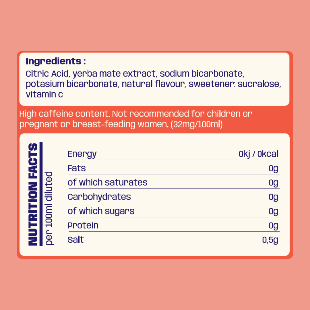 25 servings in packs of 5 delicious & invigorating Peach flavoured energy drinks with 160mg caffeine